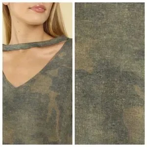 63% Polyester, 33% Rayon, 5% Spandex #camo #cutouttee #summer #boho #comfytop