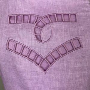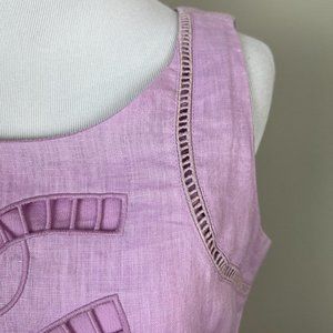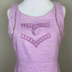 Camomilla Dress 12 Lilac 100% Linen Sheath Sleeveless Ladder Lace Above Knee