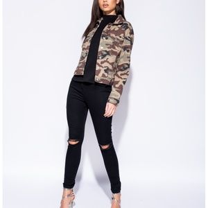 Denim jackets are a classic timeless piece & few things have the versatility of this denim mainstay! This camo jacket featuring button front detail can be teamed with skinny jeans & a bodysuit.