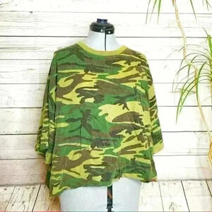 Camouflage Camo Cropped T Shirt Ringer Crew Neck 3XL Bleached. Condition is "Pre-owned". Shipped with USPS First Class.