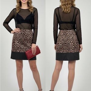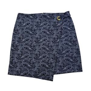 Stylish camouflage skirt with denim accents. Perfect for casual outings. Features a unique blend of green, brown, and tan colors.