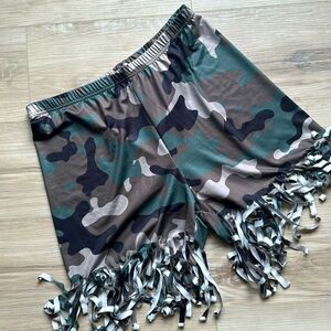 Good condition! Camouflage Fringe Stretch Shorts Size 1X Waist: 14.5” Inseam: 3”