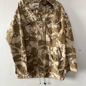 Camouflage hooded jacket with button details. Perfect for outdoor adventures.