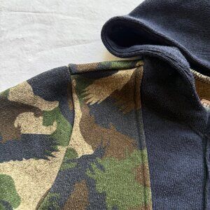 Soft and warm pullover with a stylish hood and button-down collar. Features a durable camouflage design in earthy tones. Gently used. Crewcuts boys' size 10. Smoke free home.