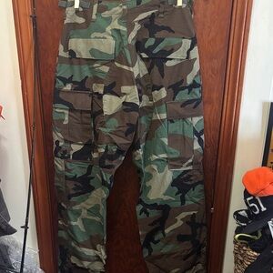 Stylish and durable camouflage men's pants, perfect for outdoor adventures. This is for 2 pairs of these pants. They are both in excellent condition if not new. However, I cannot definitively say these pants are new, but they feel new.NATO size 7583/6979. Great buy!