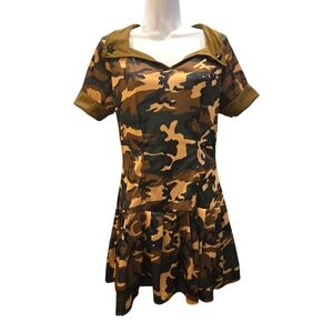 Stylish camouflage print mini dress perfect for Halloween outings. Features a unique design with a comfortable fit. Matching hair bows and a velcro bullet belt too! Only worn once! No call outs Halloween Costume medium