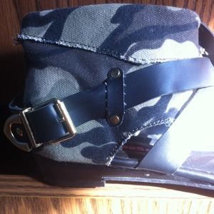 Super cute for the summer and especially since the flying fad has been camo! Sandals stops at the ankle, easy to slip on and off! Worn once, but still looks new!