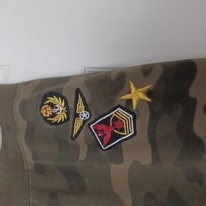 Stylish camouflage shorts perfect for outdoor adventures. Features a trendy design with patches for added flair.