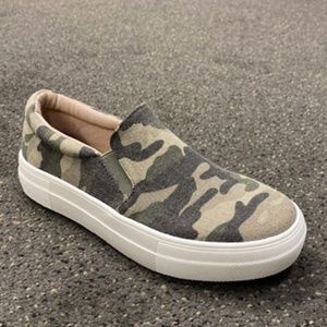 Cute slip on/off camouflage print with white soles. New, in the box. Size 10.