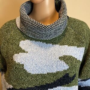 Camouflage Vintage Y2K cow neck long sleeve pullover sweater size M