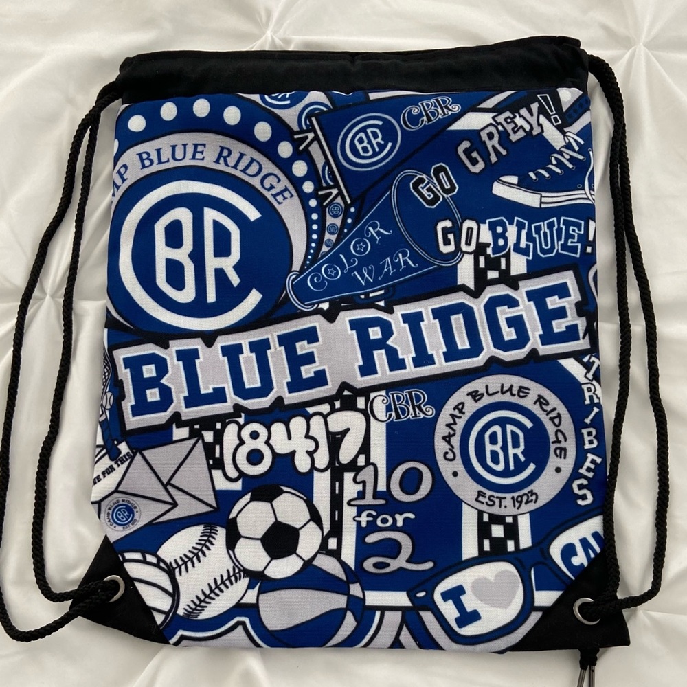 Customized Camp Blue Ridge drawstring bag. Perfect for visiting day, birthday gifts, etc! Amazing quality.