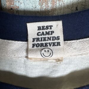 Camp Collection baseball style 3/4 sleeves that flare and have STRIPES!! it has a beautiful, positive message on the back with a peace sign and the words come together. **I see one tiny irregularity where the blue and cream fabrics join. It appears to be a spot where the seam has come loose a little. It is a womens size XL crewneck cream colored center navy blue sleeves and collar and multicolor striped flared bottom loose sleeves. The shirt is 60% cotton, 40% polyester. We need more positive messages. I see no signs. The shirt has ever been worn. Laid flat, the pit to pit measurement is about 24 inches. Since there are no top shoulder lines measuring from the center of the front crewneck collar to the center bottom hem line is about 24 inches, and from the center of the back crewneck collar to the center of the bottom hem line is about 27.5 inches please see photos.