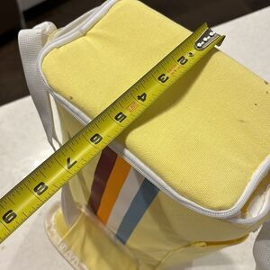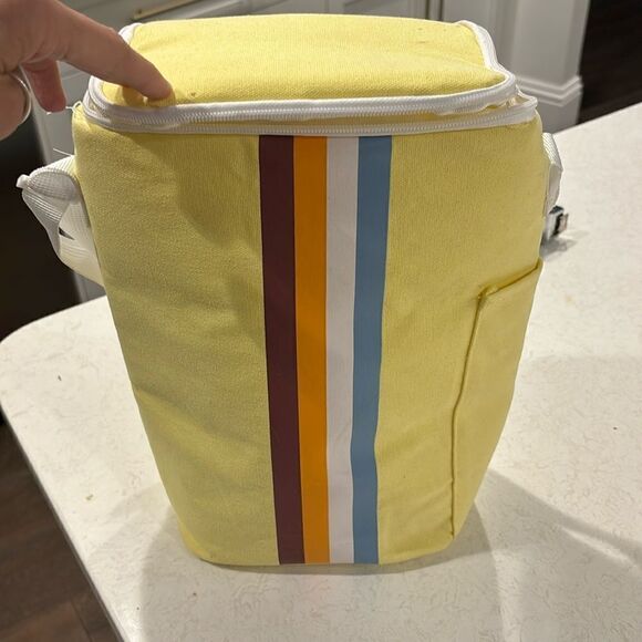 This super cute retro inspired cooler bag fits all your favorite beverages and snacks. I took one photo with a standard size bottle of wine inside so you can see how much room is in this cooler bag. Fun retro stripes. Used a few times only. Perfect for bbq, picnic, day trip, keeping your snacks and drinks fresh all day with style