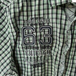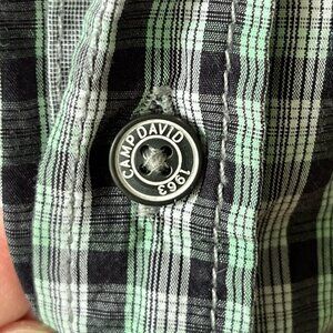 Camp David Mens Y2K Short Sleeve Button Up Shirt Size L Plaid Muscle Streetwear
