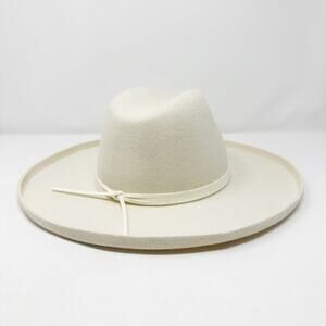 Details - Meet your wardrobes new staple accessory. The Aubrey goes with every outfit, you'll be hard pressed to find a reason not to wear her every single day. Featuring a tall pinched crown design with premium white leather detailing and finished with our signature "x" stitching. The raw edge pencil brim is unfinished leaving it perfectly imperfect. 100% Australian Wool Felt