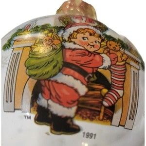 Add to your collection this beautiful Campbell Soup Kids Glass Ball Christmas Ornament from 1991-92. Featuring vibrant colors and the iconic Campbell Soup logo, this original and authentic piece of advertising memorabilia is a must-have for any soup lover. Made in the United States, this Christmas tree ornament decoration is an original and rare collector's edition that will add a touch of nostalgia to your holiday decor. The perfect addition to any collection, this ornament is in excellent condition and ready to be displayed. 3" in diameter.