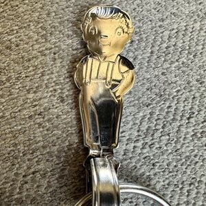 Handmade keychain made by me from vintage silver plated Campbell’s soup boy spoon! All my pieces are made from silverware found at estate sales, since this is a used spoon there are imperfections in the metal.