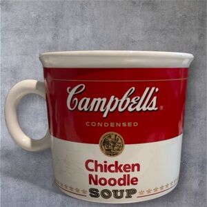 Ready to ship! Offers welcome! Vintage 1996 Campbell’s Chicken Noodle Soup Mug by Teleflora, licensed by Campbell Soup Company. Features bold red and white Campbell’s label graphics, oversized ceramic design, perfect for soup, coffee, or cocoa. Great gift for collectors, retro kitchen décor, or advertising fans. Highly collectible and harder to find—grab it today before it’s gone!