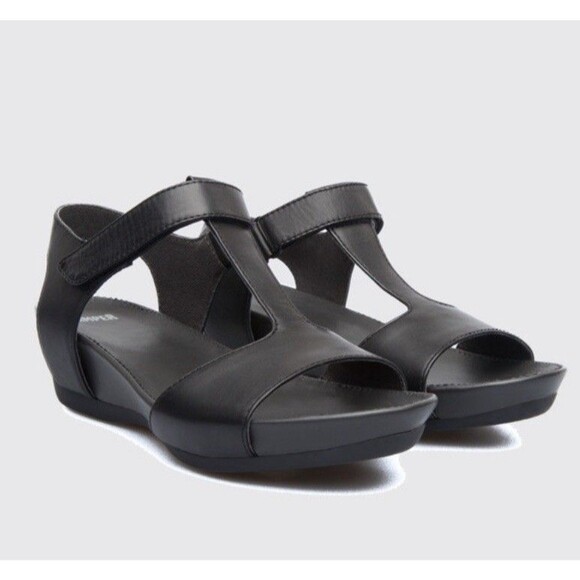 Camper Black Calfskin Leather Micro Wedge Sandals Womens Size 41 EU / 11 US