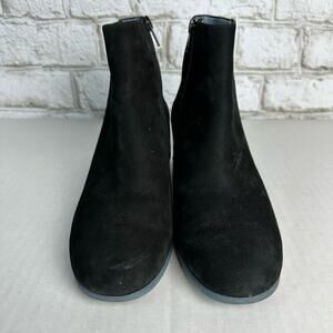 - Features: leather suede upper, rubber heel and bottom sole, ankle zip, approx 1.5" block heel