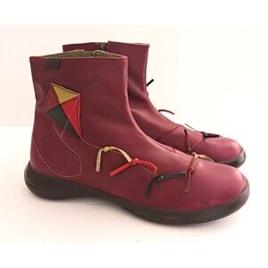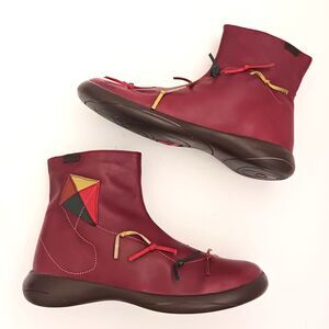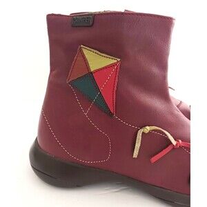Camper Burgundy Leather Ankle Boots Applique Leather Kite Design EU 39 US 8-8.5