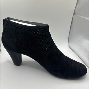 Chic black/charcoal ankle boots with a perforated texture. Stylish and adaptable. Real leather.