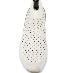 Camper slip on Himalayan sneaker boot. CamperLab + Bernhard Willhelm Himalayan casual sneakers with a textured style, a geometric pattern, sport sock style, a pull tab at the rear, a flat rubber soul, and a low heel.