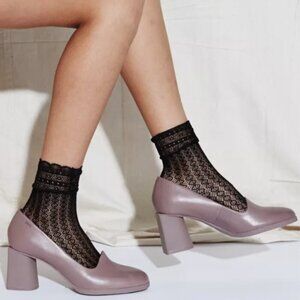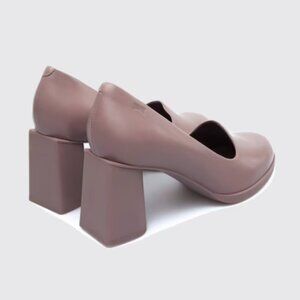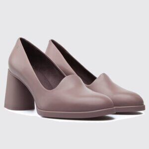 Camper 'Lea' Formal Block Heel Shoes in Light Mauve Purple Size 36.In excellent used condition. The Lea women’s shoe features a tapered heel that gives it a subtle, smart edge. It has slip on styling, an inverted/flipped low profile block heel with an almond toe.