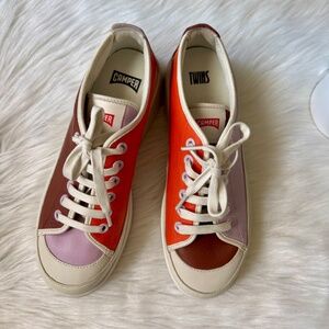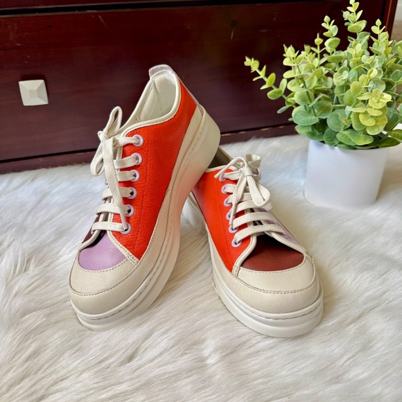 Camper Leather Colorblock Platform Sneakers Orange Lilac Cream Size 40 (US 9)