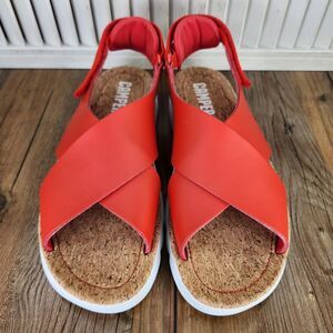 Camper Oruga Womens Size 9 Red Leather Cross Strap Designer Cork Sandals EU 40