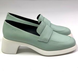 Camper Trisha heeled loafers rubberized leather seafoam green new without box 36