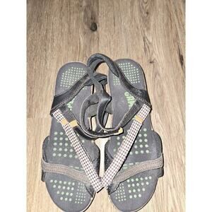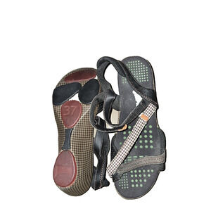Camper Wedge Strappy Sandals Sz 37 US 7 EUC Brown Leather Fabric Patterned