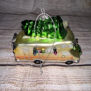Camper with Christmas Tree on Top Figurine Ornament 4 .5 inches Vacation Holiday