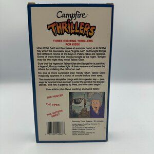 This VHS features "Campfire Thrillers," a 1993 animated collection of three exciting children's tales. Includes the original box; running time is approximately 30 minutes. Good pre-owned condition.
