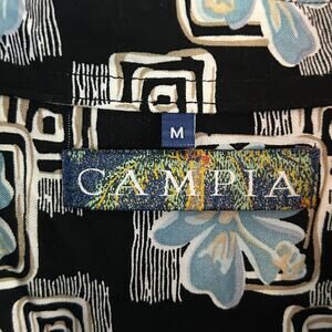 Campia Men's Black Floral Hawaiian Button Front Camp Shirt M Medium New