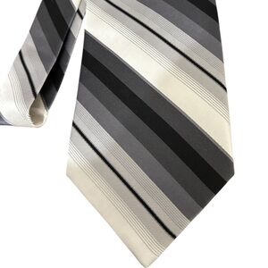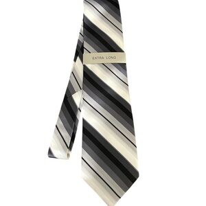 Campia Moda 100% Silk Black and Gray Striped Extra Long Tie Liquid Repellant