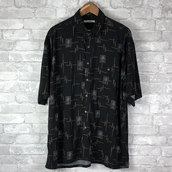 Campia Moda Black Hawaiian Silk Short Sleeved Button Down Casual Shirt Size XL