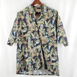 Campia Moda Hawaiian Shirt Men's L Tropical Drinks Palms Beer Black Green EUC