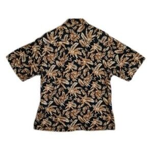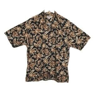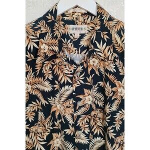 The Campia Moda Hawaiian Aloha Shirt is a classic button-down style short sleeve shirt made from 100% cotton. It features a tropical Hawaiian design with black and tan color accents, perfect for casual occasions like travel, parties, or everyday wear. The shirt is machine washable and has a regular fit men's size XL. The button-down collar and button closure add a touch of sophistication to the overall casual look, making it a versatile piece for any season.