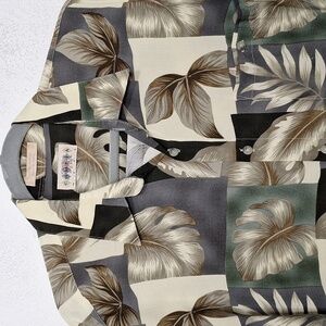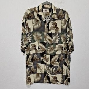 Campia Moda Men's Leaf Print Short Sleeve Hawaiian Button Down Shirt Size L
