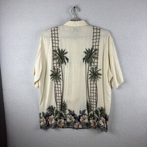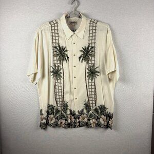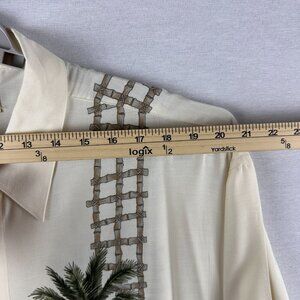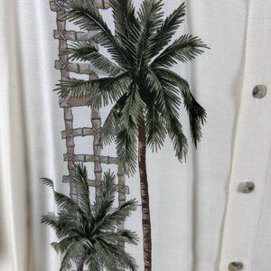 Campia Moda Vintage Cream Tropical Palm Tree Print Short Sleeve Button Up Shirt