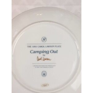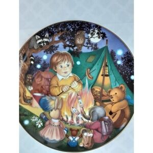 This is very cute collectible plate by Carol Lawson entitled Camping Out. It is a Limited Edition made of fine porcelain from the Franklin Mint in 1991. Excellent condition gold-trimmed no cracks or damage, beautiful for a child's room. 8-1/2" in diameter.