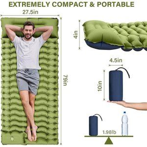 Camping Sleeping Pad, Ultralight Camping Mat with Pillow Built-in Foot Pump