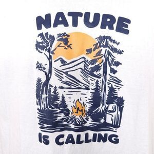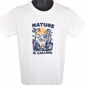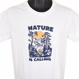 Camping T Shirt Mens Size Medium White Nature Is Calling Campfire Outdoors