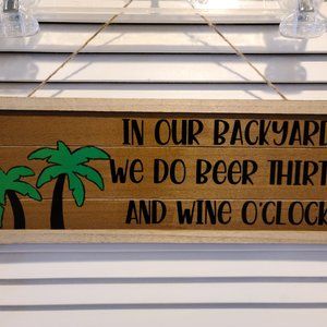 Camping Sign - At the Camp We Do Beer 30 & Wine O'clock - Choose which sign - funny motivational wood signs with jute hanger.