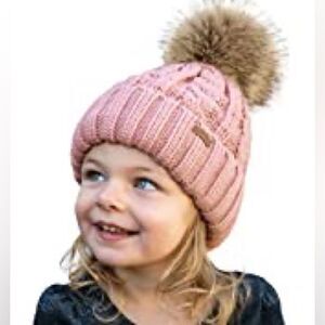 Camptrace Girls Removable Pom Pom Knit Winter Beanie Hat in Pink