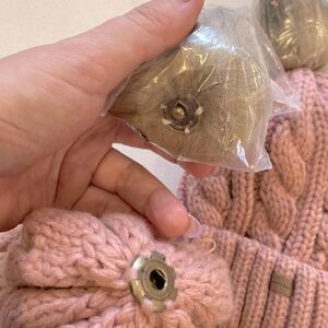 Pom Pom Hat - At the top of the pom beanie attached a cute fur ball, this puff Faux Fur Pom is bigger, super cute and removable; The pom pom snaps securely in place when you want to wear it, and is easily removable when you don't