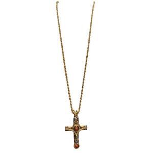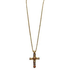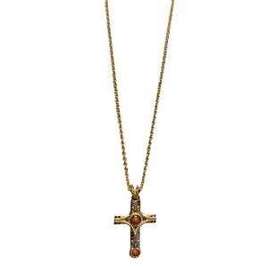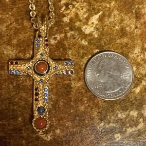 Camrose & Kross JBK Cross Necklace Gold w/ Blue & Red Stones/Crystals 20 Inches
