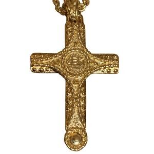 Cross measures 2.25 inches long from top of bail and 1.25 inches wide.