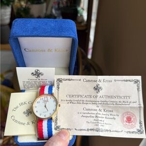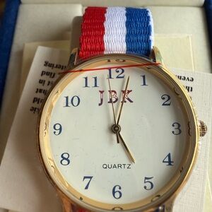 Camrose & Kross JBK Gold Vintage Watch with Red, White, and Blue Strap